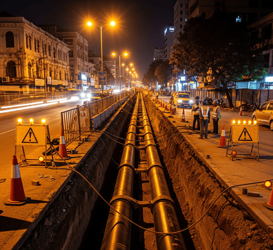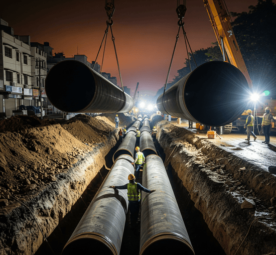 NTC Infra is undertaking a key sewage infrastructure upgrade in Chennai by replacing the existing 1000 mm DI pumping main with two parallel 900 mm CI mains, spanning 6,135 meters from LB Road Relay SPS to Perungudi SPS. This project is strategically designed to enhance sewage flow capacity, introduce operational redundancy, and improve the overall reliability of the city's core wastewater system. With a focus on precision, durability, and long-term performance, the initiative reflects NTC Infra’s commitment to building smarter, more resilient urban infrastructure.